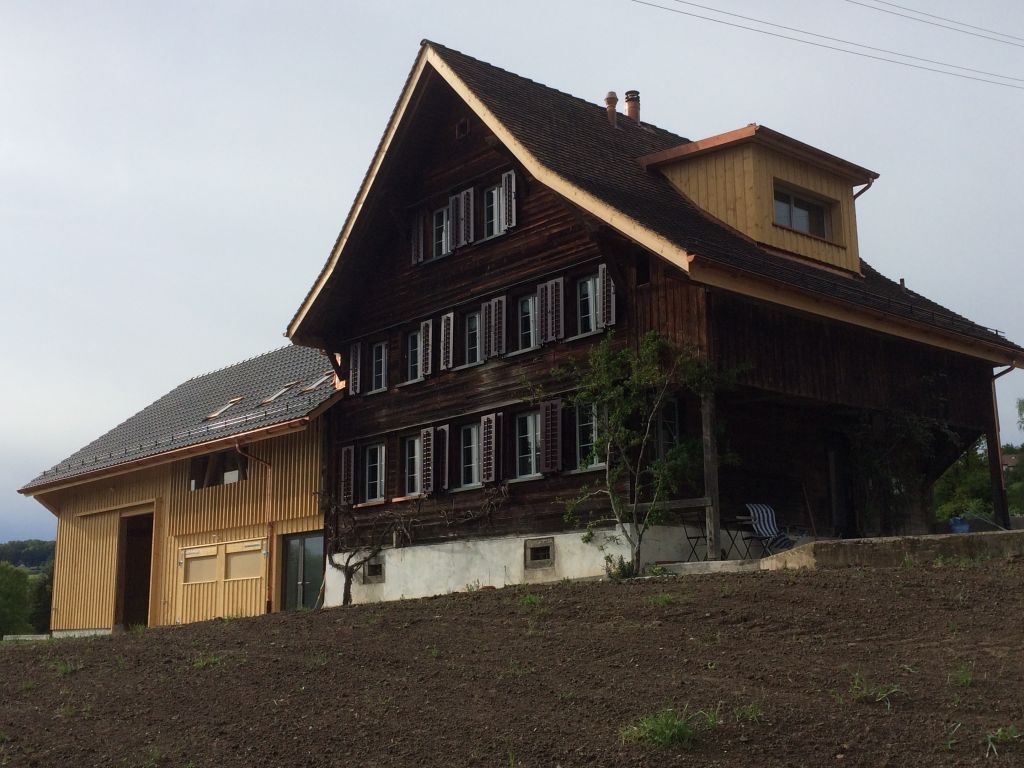 Beim Umbau des Wohnhauses wurde festgestellt, dass der Unterbau dem zukünftigen Aufbau nicht standhalten würde. Das Haus wurde deshalb auf Stelzen gesetzt und angehoben, wobei die Bodenkonstruktion optimal ergänzt und das Umbauprojekt sorglos weiter umgesetzt werden konnte. Das Gebäude wurde nach heutigen Standards saniert, wobei die erhaltenswerte Bausubstanz aufgefrischt und mit Neuem ergänzt wurde. Die Scheune erhielt eine neue, moderne Holzfassade.