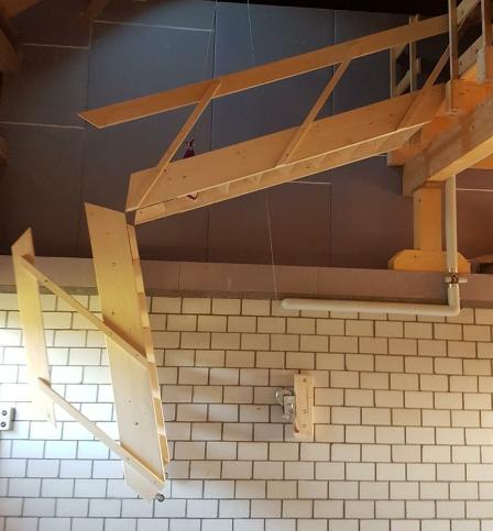 Die Treppe ist möglichst raumsparend geplant und kann hoch gezogen werden.